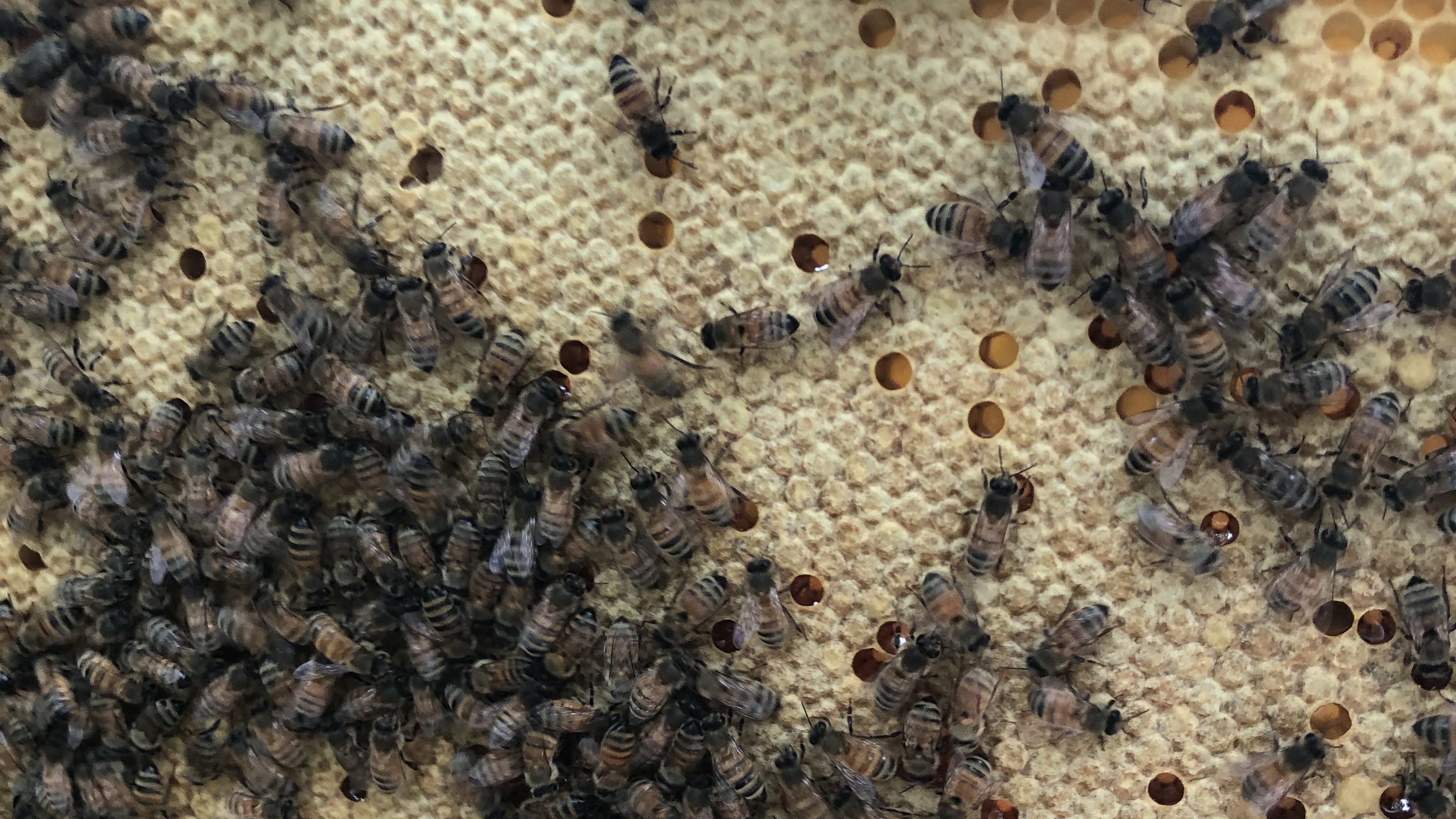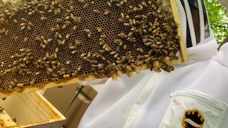 One hive survived the winter and we purchased one package of bees. From there we were able to generate three packaged of bees. So far this season we have collected over 100 pounds of honey. This year is the friendliest hives of bees we have ever worked with.